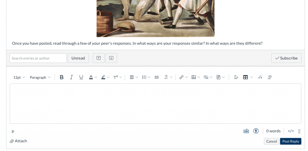 You can click on any reply to view the text.  You may also write a response to any of the posts.  To reply, click on the text you wish to reply to and click “Reply.”  You will go to to the “Reply to Post” page. See below: