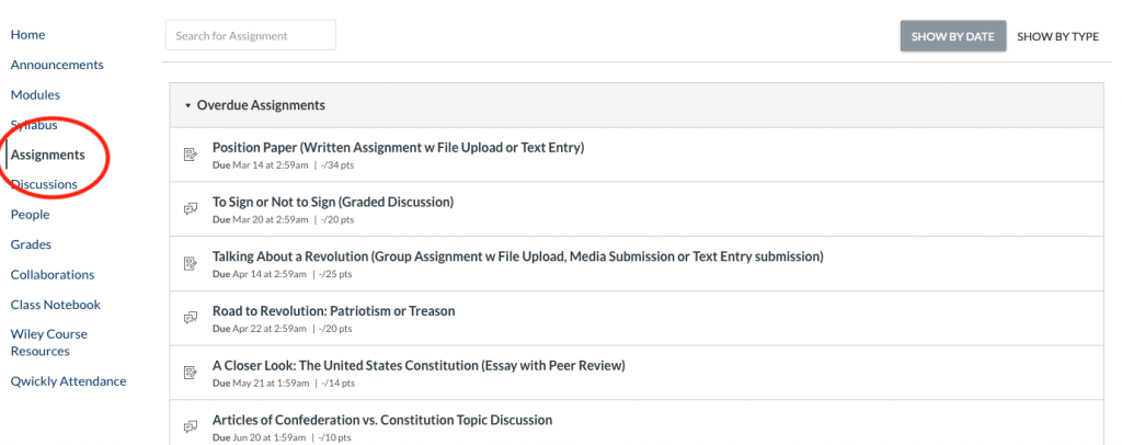 To take a test or quiz, go to the test or quiz section from the course menu on the left side.