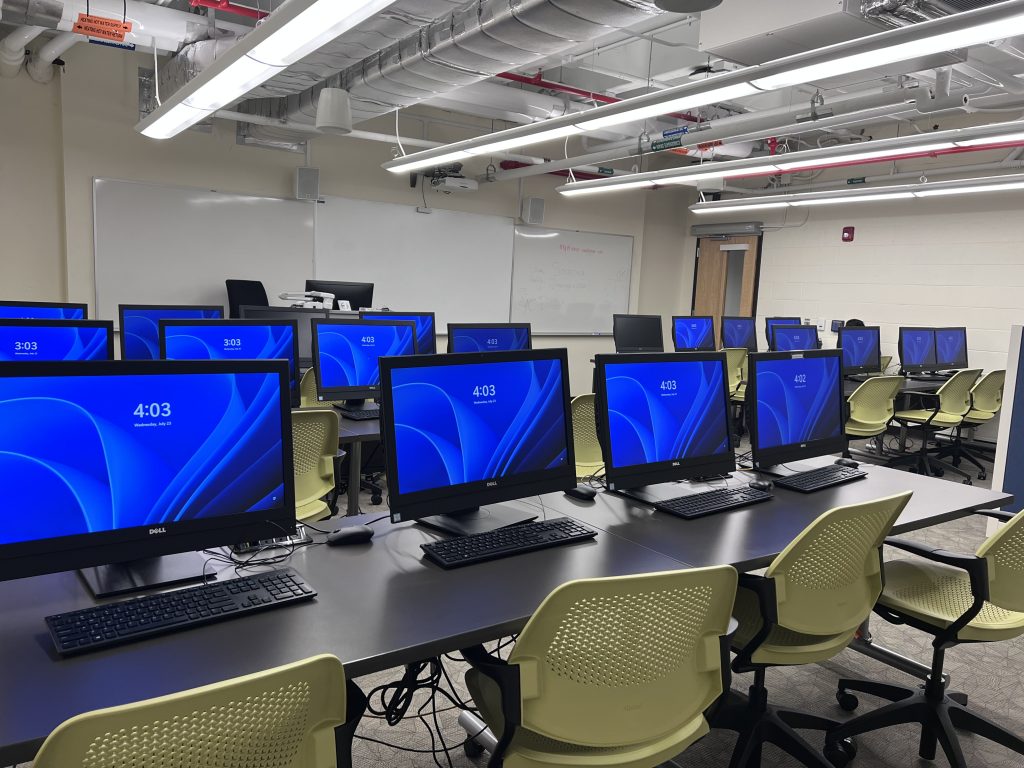 Looking for an available computer on campus? Click a building on the left, then click the photo of the classroom you want to check. The room number is listed below each image. You’ll see live computer availability for that lab.