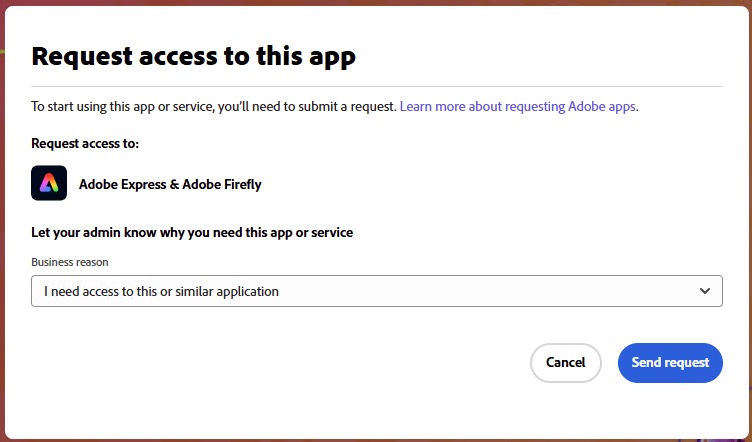 9. Once approved (this is a manual process and may take up to 5 business days), you will be able to Open in browser from the Creative Cloud Desktop App.